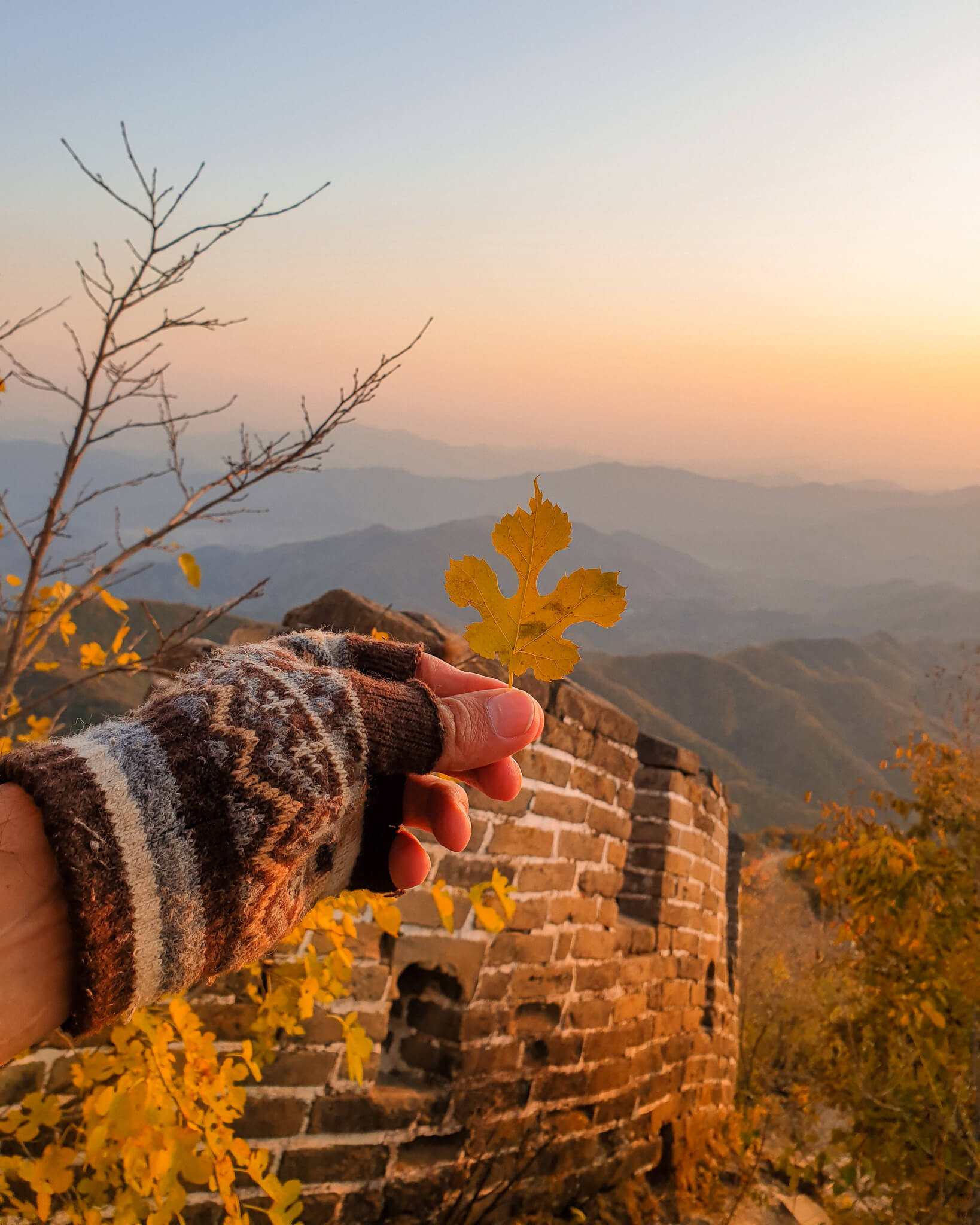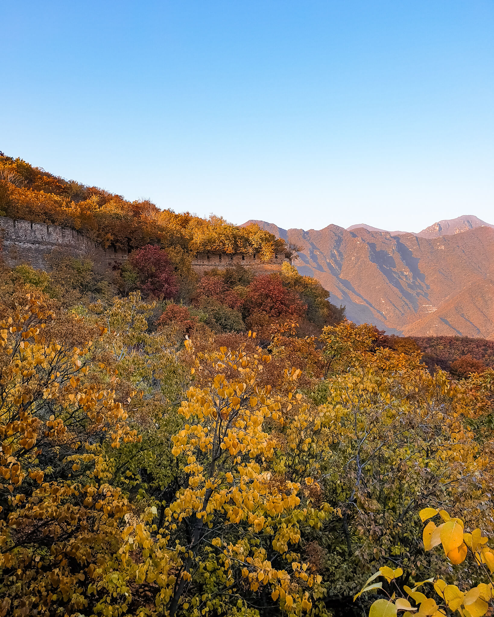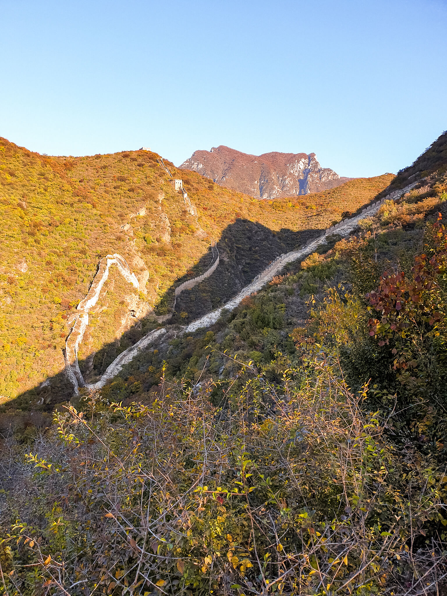 At this midway break, we enjoyed some fresh fruit bought earlier in the area, in the midst of the countryside, 2-hours from Beijing, filled with chestnut orchards and farms. With a much welcoming crisp autumn breeze, we stood there in the clearing for a while, looking down as to how far we have come. The sky was clear from any city pollution. Gosh, it’s tough but so amazing, “Keep going,” I kept on repeating to myself. More determined, and rather focussing on the beauty of the vivid autumn vibes, we moved step by step closer to the top.
