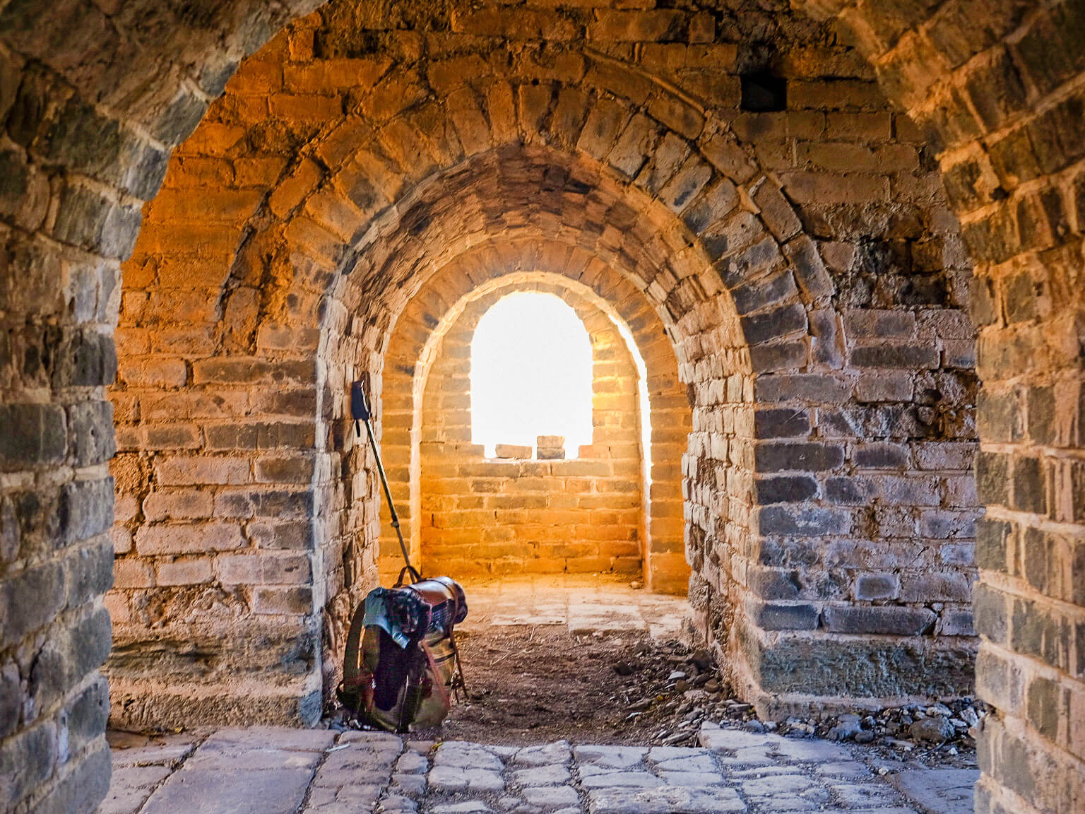 No surprise that it was an early night, tired bodies looking forward to a good night’s rest. Quite an extraordinary camping experience. Sleeping in a watchtower of one of the World Wonders. Settling down in your sleeping bag, on a thin mattress, you can feel the carved bricks of the wall, you are lying where many men before might have rested their heads. Imagine if these walls could speak.