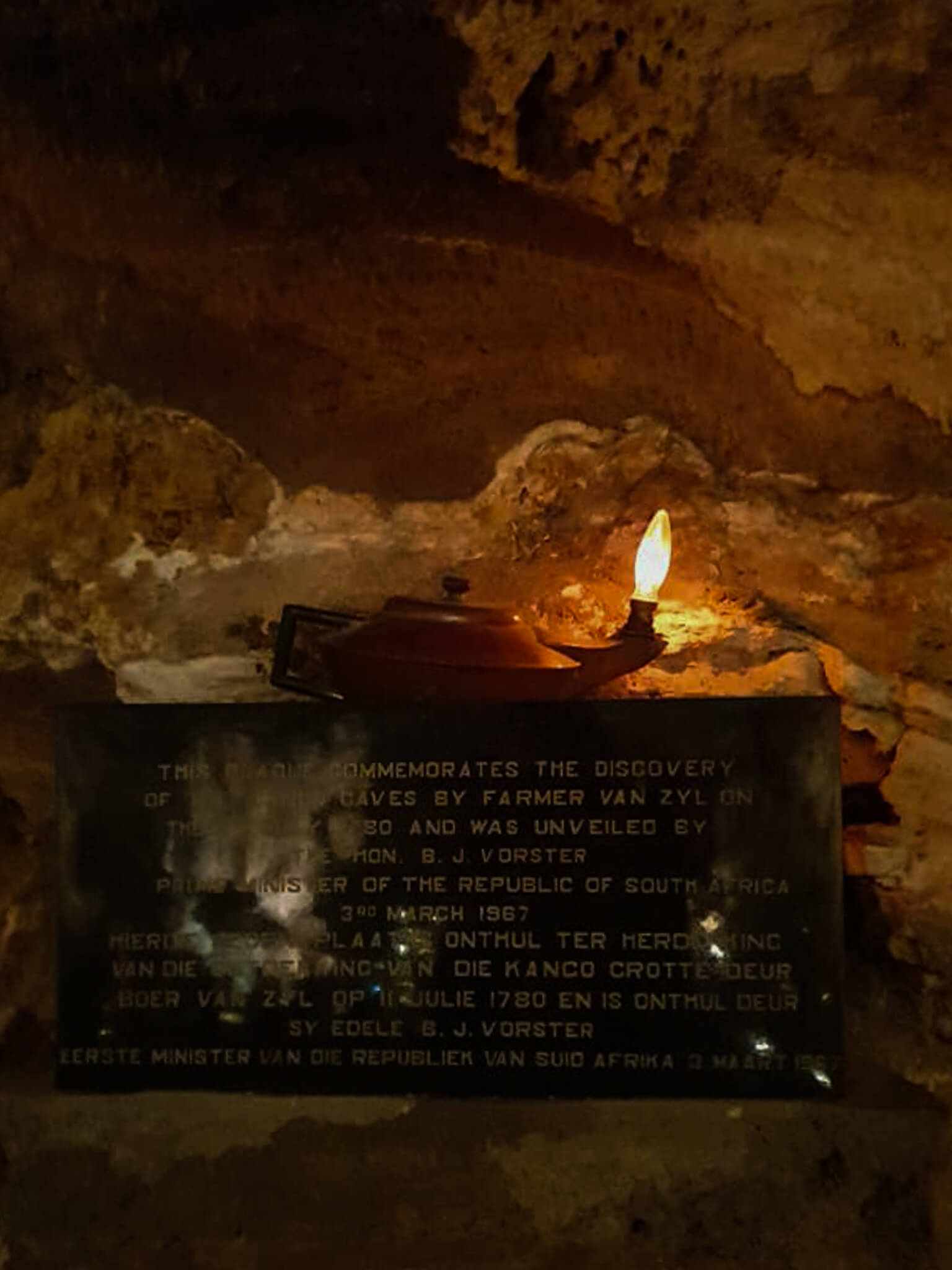 Among the highlights of the tour was the most impressive cave in the system, Van Zyl Hall. As we descend the stairs, the first thing we notice is a dim orange flicker, which is the only light. A candle, the same brightness of light that Van Zyl initially used when he discovered the caves. The thought that someone entered the cave unaware of the exact scale we later discovered is incredible. Staring into the darkness, I had no idea what I was looking at. I can’t say that I am a fan of darkness.