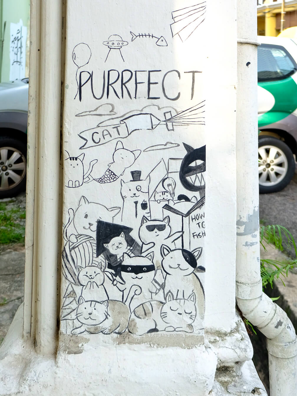 101 Lost Kittens is an awareness campaign in George Town that uses street art to rise attention on the issue of helping stray animals find forever homes. The artists work under the name ASA, (Artists for Stray Animals).