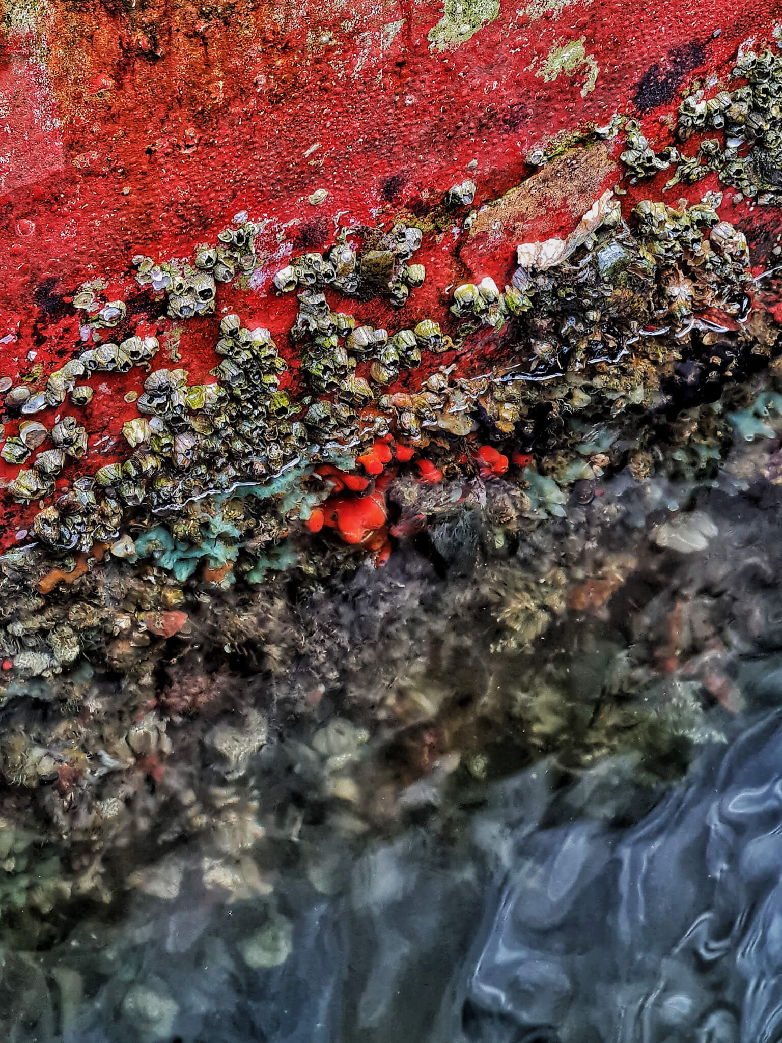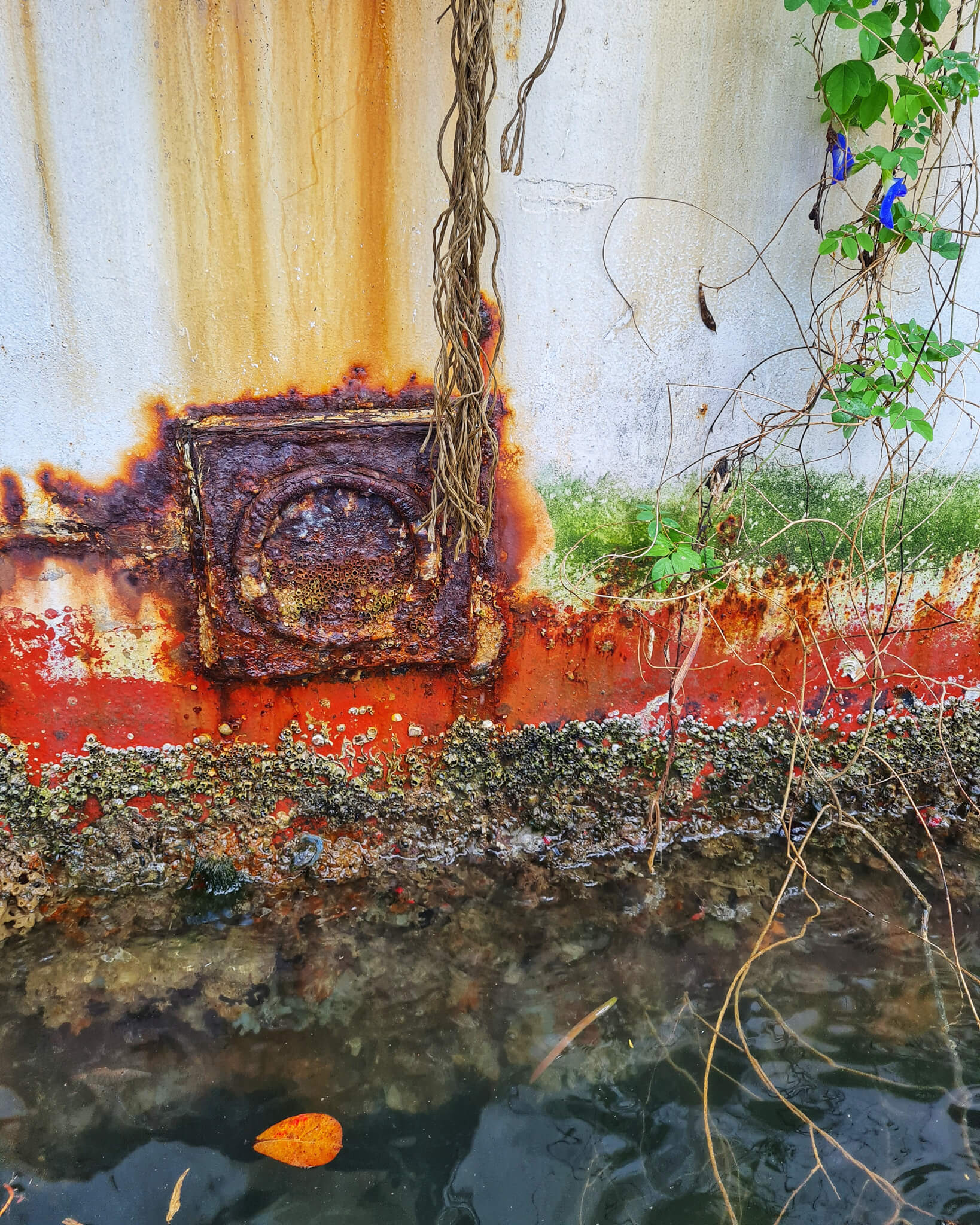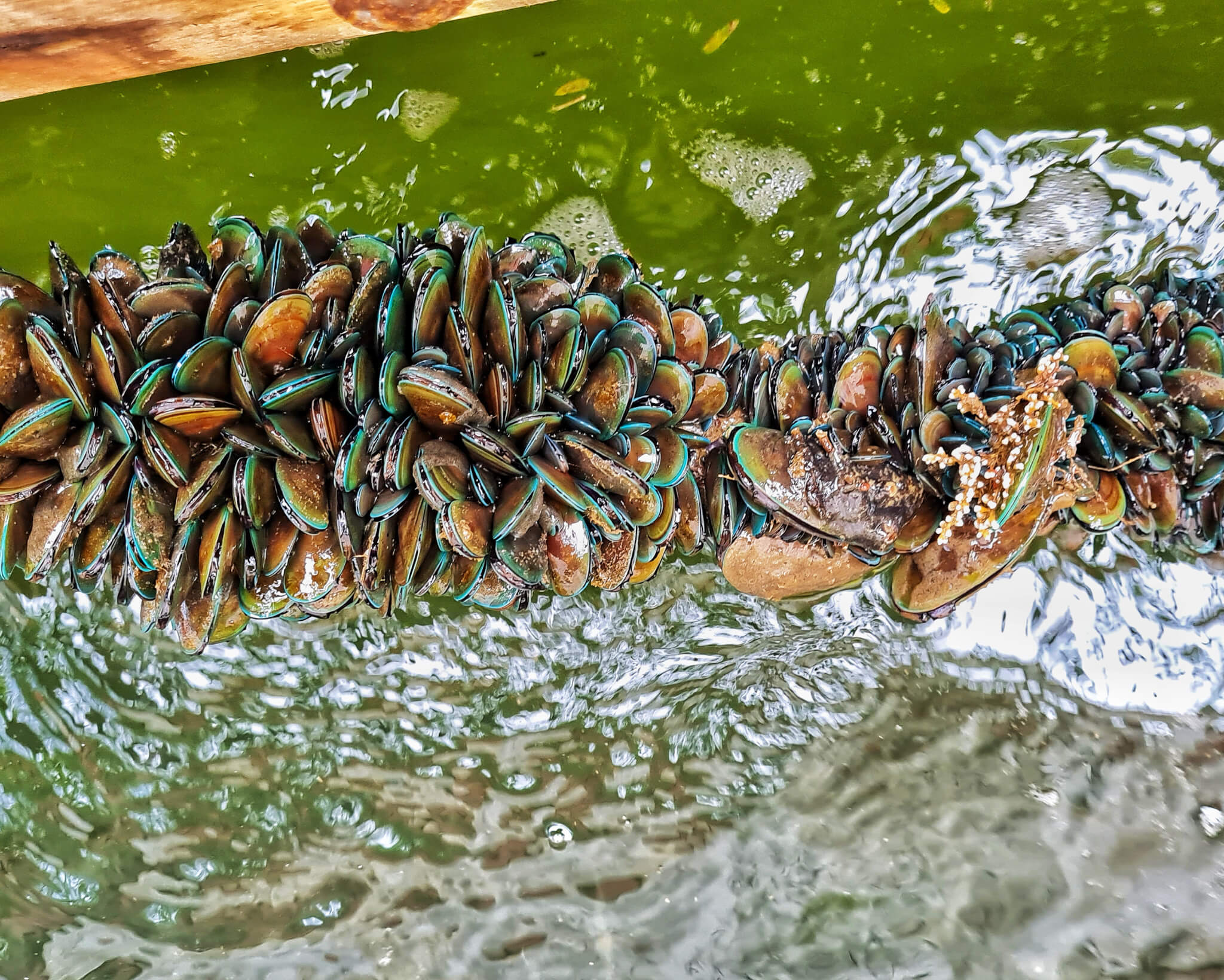 After the ‘very challenging’ task of catching our fish (not), we wandered around to take some pictures and admire the openness of being out on the ocean, feeling a world apart from the busy Singapore centre. The sky felt so big, and you could see so far. Attached to ropes and the bottom of Smith Marine, we spotted green mussels and other barnacles, with beautiful compositions and hues.