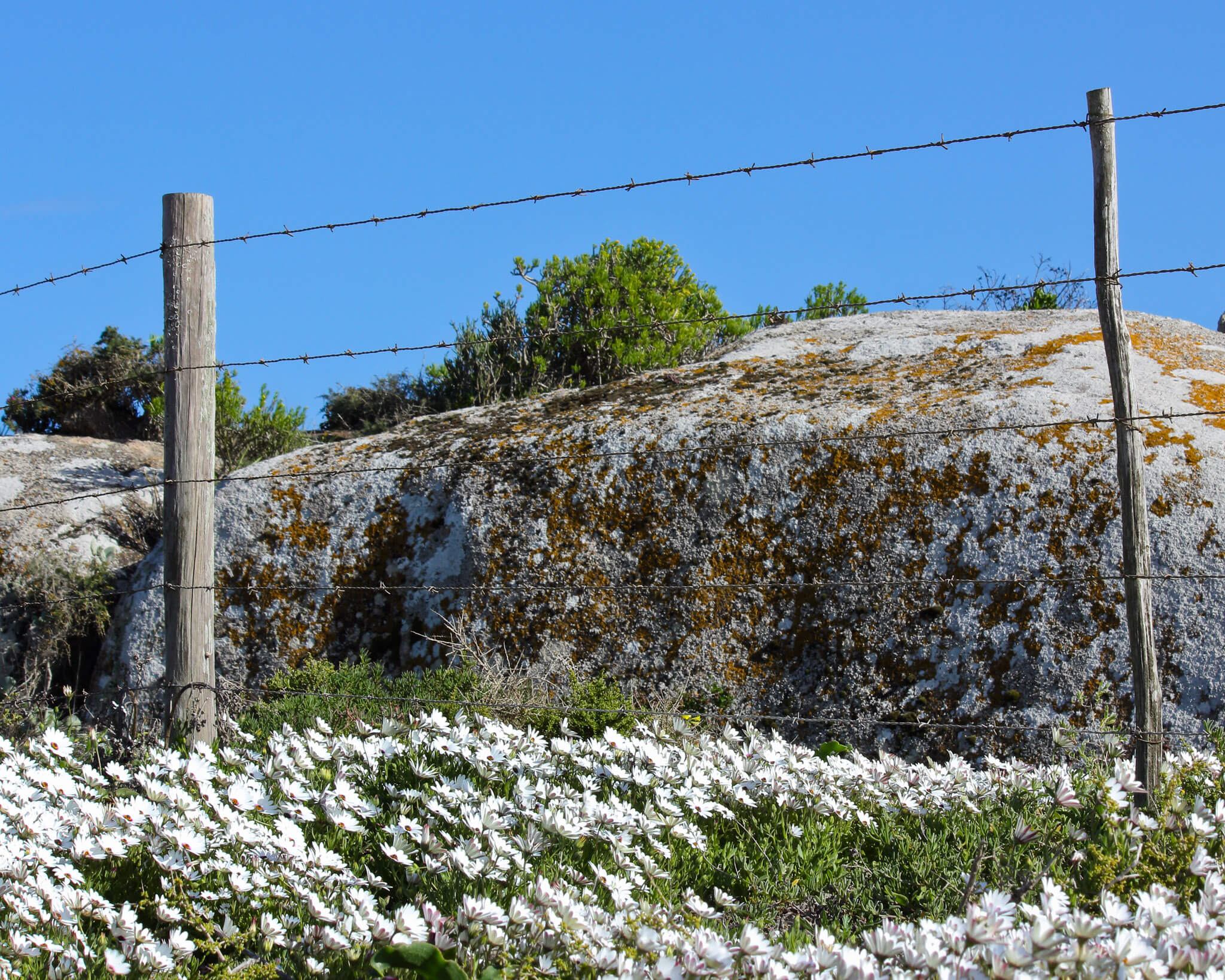 The reenblommetjie or white rain daisy (Dimorphotheca pluvialis) is in abundance here, as well as the Gousblom.