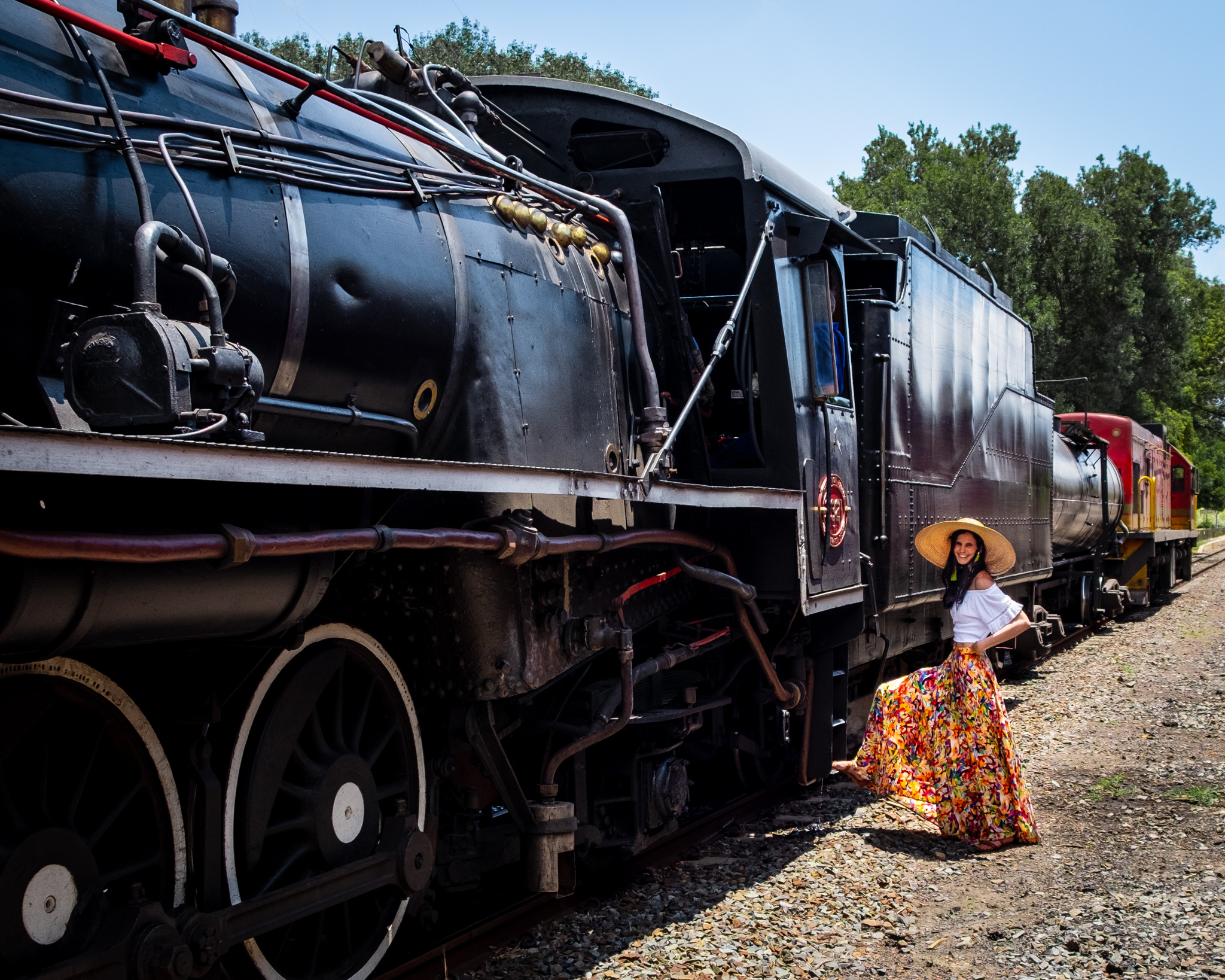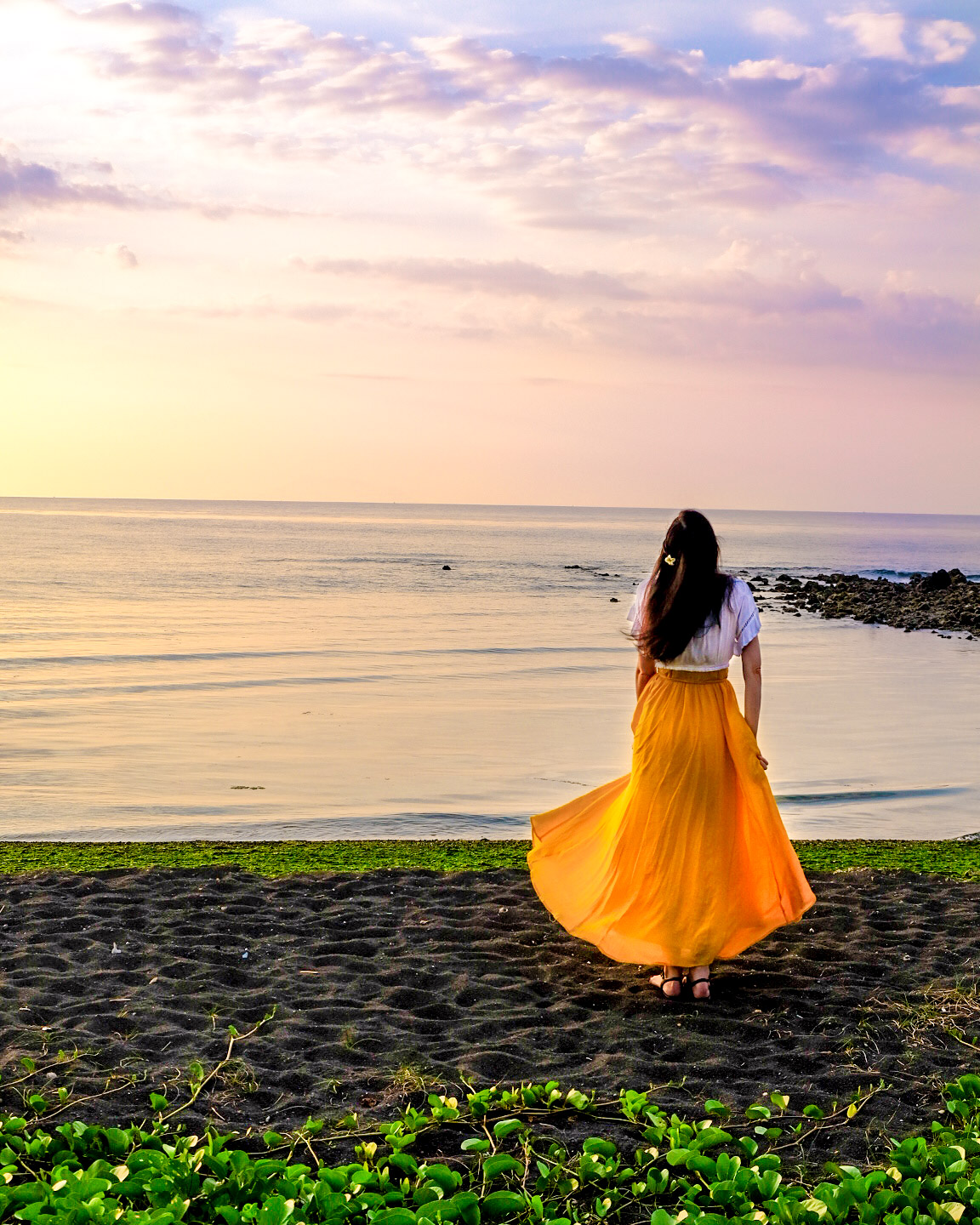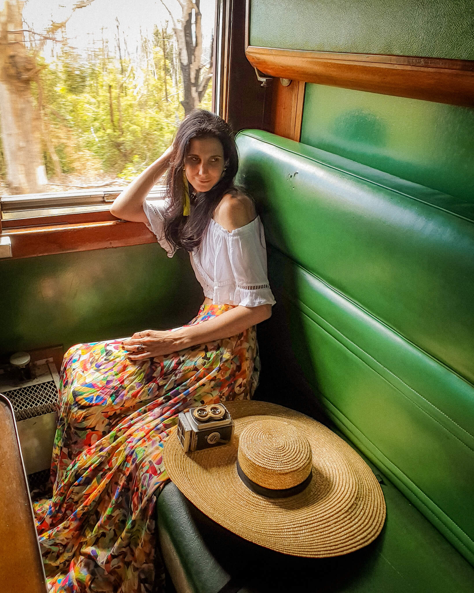 For summer locations, I always make sure I have a flowy dress, skirt or wrap pants and my hat. I have a few items that always go with me, my navy wrap pants, print skirt and white tops. White tops help to reflect light up so your face is not do dark, works similar to a photographers reflectors.