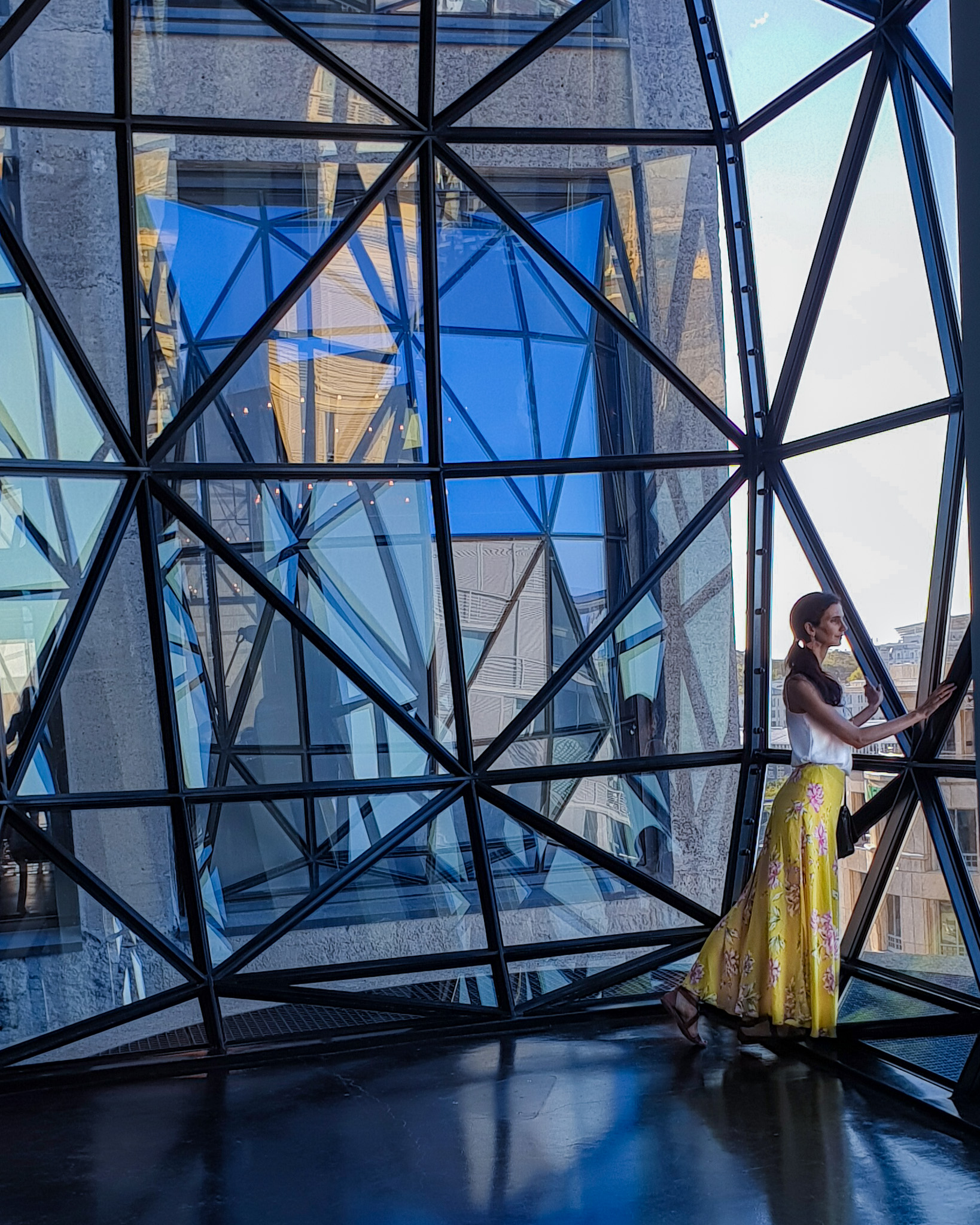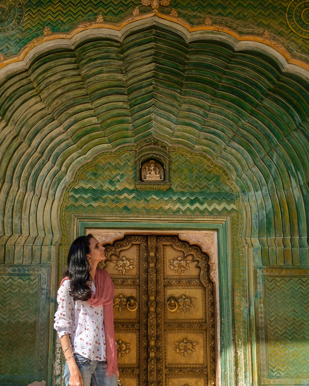 Accessories are also a good way of changing an outfit, bold necklaces or earrings. Secondly, a scarf is always a good idea, especial as in summer you would probably be wearing sleeveless, it serves a dual purpose. If you are visiting a religious site, you can use a scarf to cover up. A scarf also works well to bring movement to a very static image or landscape.