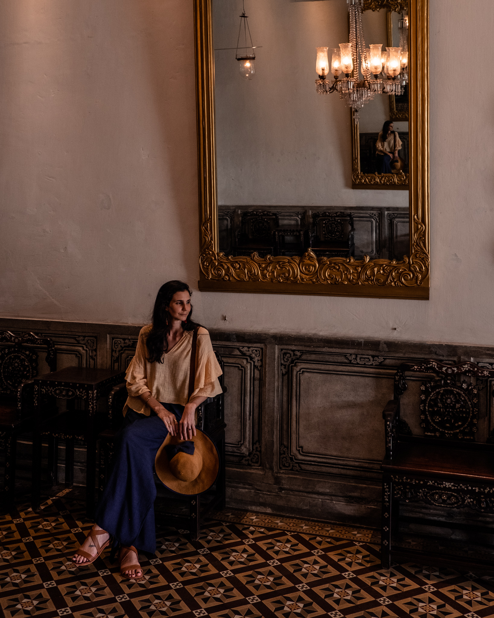 There is no wrong or right here. But when you researched and see that the place is very detailed, like a Marrakech market or a flower field. Try adhering to solid colours as it can become overly busy, and you will disappear in your photo. A complimentary colour or a print can work well if you observe buildings with solid colours or backgrounds with monotone colours, for instance all green trees.